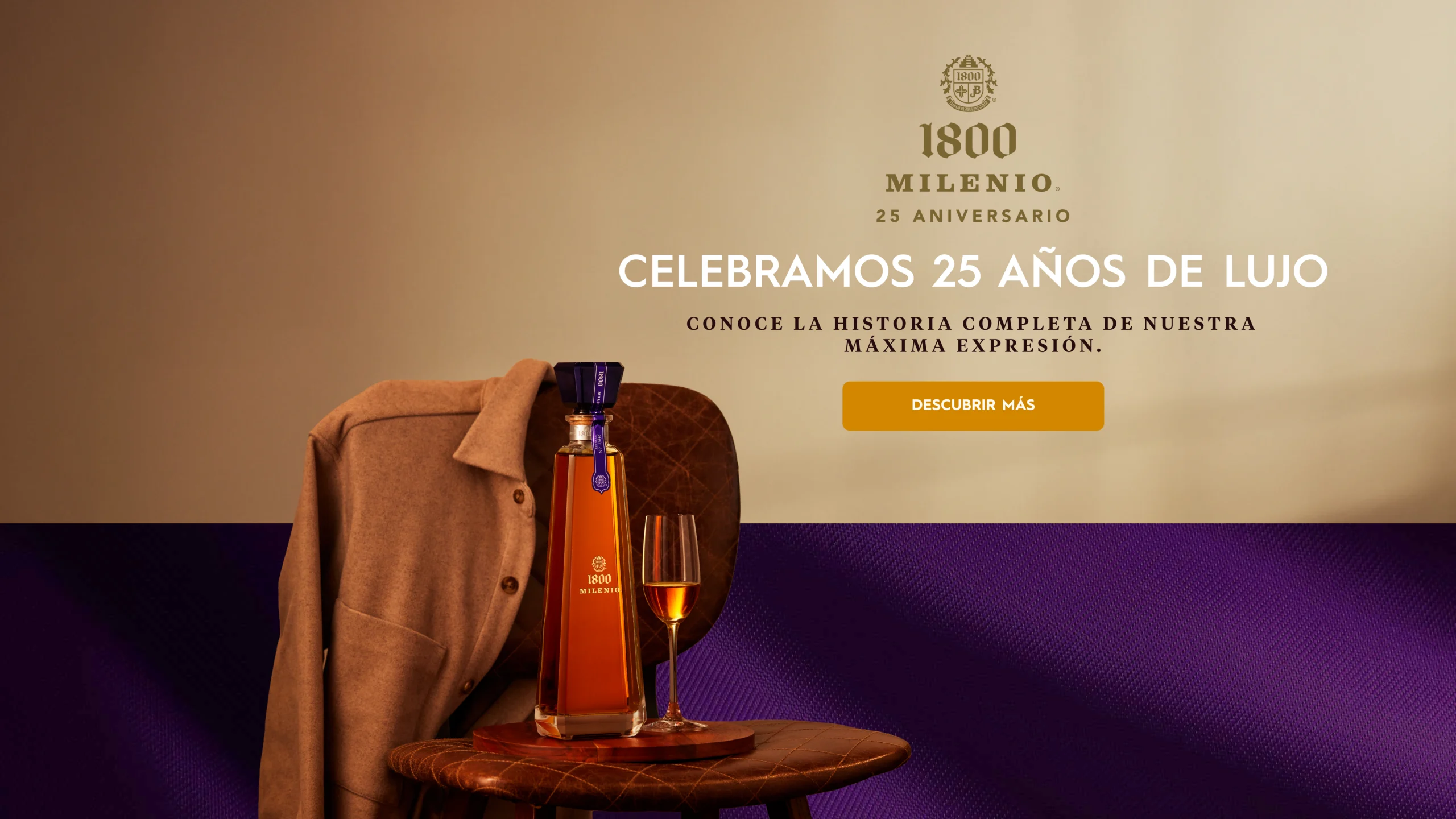 1800 Milenio es un tequila extra añejo que celebra y representa los más de 250 años de tradición familiar. Elaborado con agave azul, su diseño elegante y su sabor excepcional lo destacan en el mercado. Añejado en barricas de roble francés de cognac, ofrece un equilibrio natural y una suavidad extrema con notas de miel, higo, frutos rojos y especias.